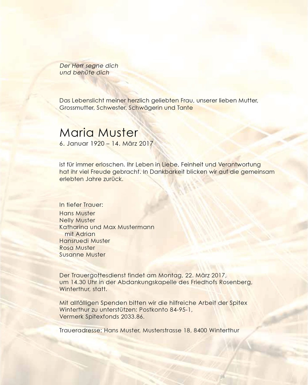 (die Dankeskarte ist die Hälfte vom Leidzirkular) - Couvert