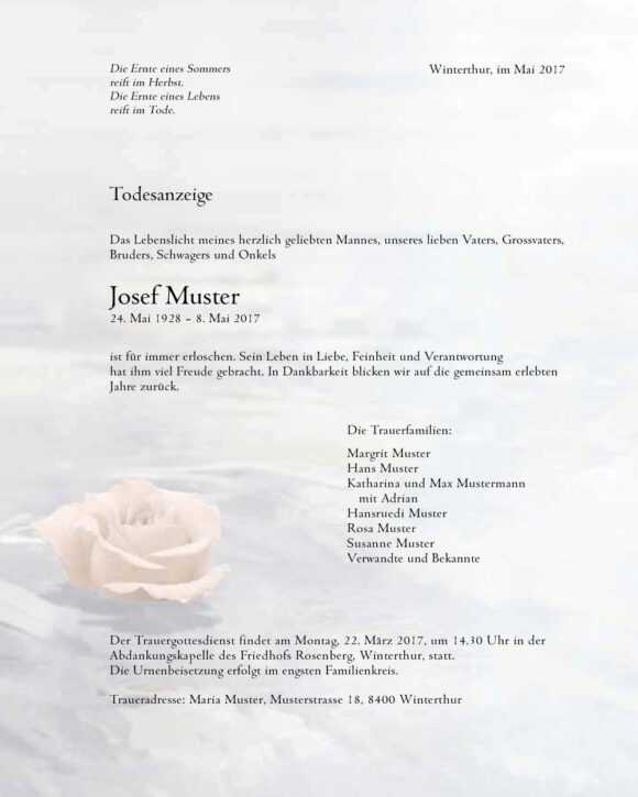 Gerne beraten wir Sie bei der Abwicklung der Bekanntmachung eines Todesfalles